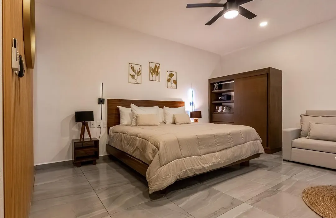 Las habitaciones del hotel Brisamar Studio B Playa del Carmen proporcionan a los huéspedes TV de pantalla plana con canales vía satélite, además de comodidades como servicio de planchado y climatizador. Además de servicio de tetera/cafetera, las habitaciones cuentan con escritorio. Los baños privados están incluidos en las habitaciones.
